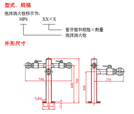 M P S系列泡沫消火栓是泡沫滅火系統的重要裝置之一,特別適用于大面積有火災危險的易燃液體和可燃物體的生產、儲存和使用的場所,安裝在保護區(qū)域內預設的管道上,當火災發(fā)生時打開悶蓋,聯接消防水帶,打開球閥,向泡沫發(fā)生裝置輸送泡沫液。